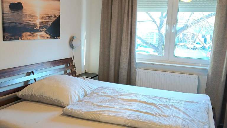 Die Ferienwohnung verfügt über 3 Schlafzimmer, ein Wohnzimmer sowie einen Balkon mit Stadtblick. Zur Ausstattung gehören ein Flachbild-TV, eine gut ausgestattete Küche mit Kühlschrank und Geschirrspüler sowie ein Badezimmer mit Dusche. Handtücher und Bettwäsche werden zur Verfügung gestellt.