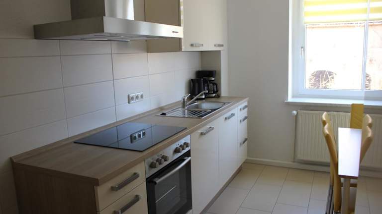 Die Ferienwohnung besteht aus einem Schlafzimmer, einem Wohnzimmer und einer voll ausgestatteten Küche, die mit einem Kühlschrank und einer Kaffeemaschine ausgestattet ist. Zudem gibt es ein Badezimmer mit einer Badewanne und einem Haartrockner. Handtücher und Bettwäsche werden bereitgestellt.