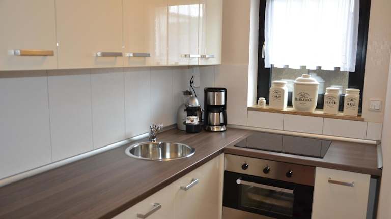 Die Ferienwohnung verfügt über ein komfortables und modernes Interieur. Sie bietet einen Flachbild-TV, einen gemütlichen Sitzbereich und einen DVD-Player. In der voll ausgestatteten Küche finden Sie einen Geschirrspüler und einen Backofen. Das private Badezimmer ist mit einer Dusche, einem Haartrockner und einem Bademantel ausgestattet.