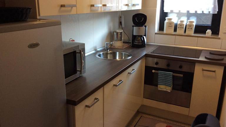 Die Ferienwohnung ist eine Selbstversorgerunterkunft, daher haben Sie die Möglichkeit, Ihre eigenen Mahlzeiten zuzubereiten. Die voll ausgestattete Küche bietet Ihnen alle notwendigen Geräte und Utensilien. Alternativ gibt es in der Umgebung verschiedene Restaurants und Cafés, in denen Sie lokale und internationale Spezialitäten genießen können.