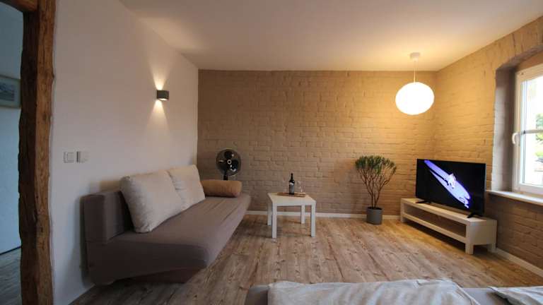 Das Apartment bietet Ihnen ein komfortables Schlafzimmer, ein gemütliches Wohnzimmer und eine gut ausgestattete Küche mit Kühlschrank und Backofen. Das Badezimmer verfügt entweder über eine Badewanne oder eine Dusche. Handtücher und Bettwäsche werden Ihnen zur Verfügung gestellt, so dass Sie sich um nichts kümmern müssen. Von der Terrasse aus haben Sie einen herrlichen Blick auf den Garten, der zum Entspannen einlädt.