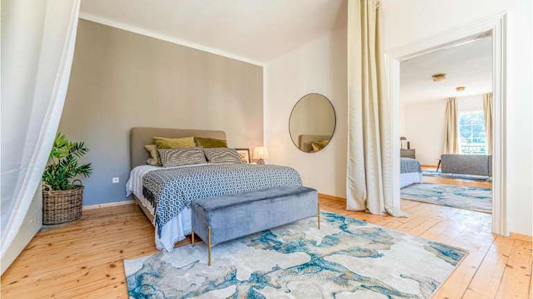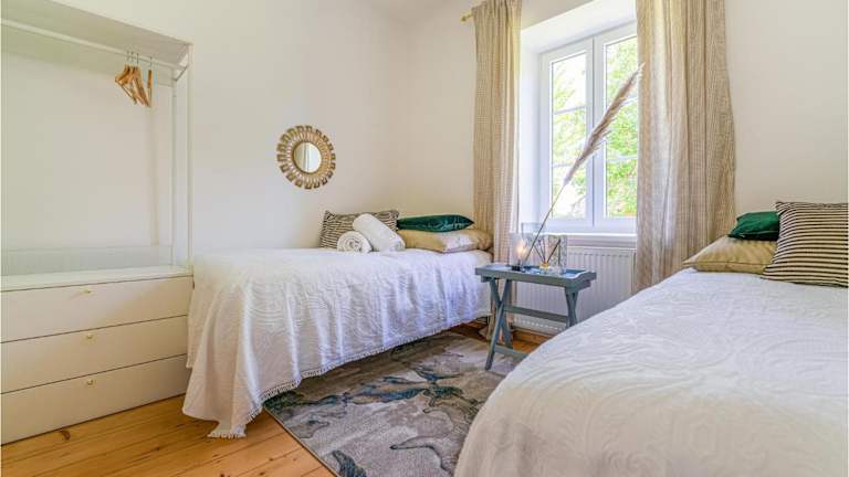 Die Ferienwohnung verfügt über drei Schlafzimmer sowie ein Wohnzimmer, das mit einem Kabel Flachbild-TV ausgestattet ist. Zudem gibt es eine voll ausgestattete Küche mit einem Kühlschrank, die den Gästen ermöglicht, ihre Mahlzeiten selbst zuzubereiten.