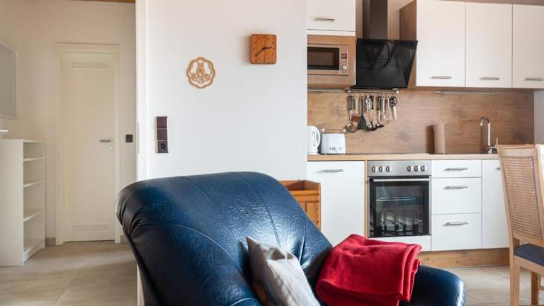 Die Ferienwohnung umfasst zwei Schlafzimmer und ein Wohnzimmer, das mit einem Fernseher mit Satellitenkanälen ausgestattet ist. Eine voll ausgestattete Küche ist vorhanden, einschließlich Kühlschrank und Geschirrspüler. Das Badezimmer ist mit einer Dusche ausgestattet. Die Unterkunft bietet Nichtraucherzimmer und zusätzliche Aufbewahrungsmöglichkeiten für Ski.