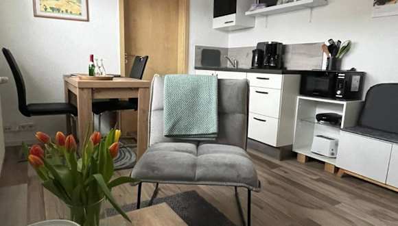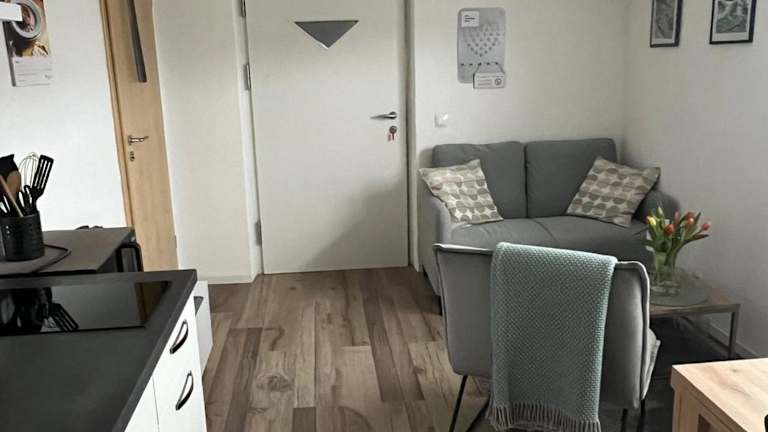 Die Ferienwohnung umfasst ein Schlafzimmer, eine Küchenzeile, die mit einem Kühlschrank und einer Mikrowelle ausgestattet ist, sowie ein Badezimmer mit Dusche und Haartrockner. Handtücher und Bettwäsche werden zur Verfügung gestellt.