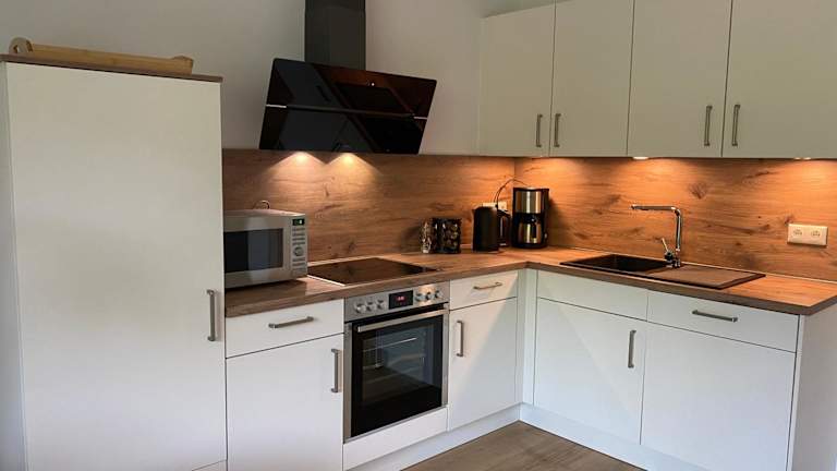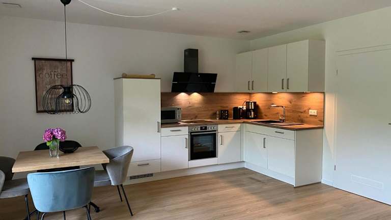 Die Ferienwohnung umfasst ein Schlafzimmer, ein Wohnzimmer und eine voll ausgestattete Küchenzeile, die mit einem Kühlschrank und einer Kaffeemaschine ausgestattet ist. Ein Badezimmer mit Dusche ist ebenfalls vorhanden. Handtücher und Bettwäsche werden bereitgestellt. Die Unterkunft bietet Nichtraucherzimmer und ist rollstuhlgerecht.