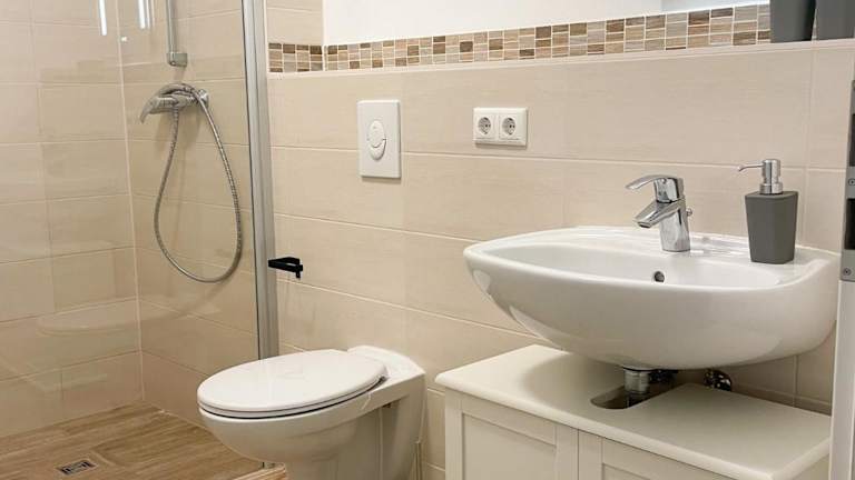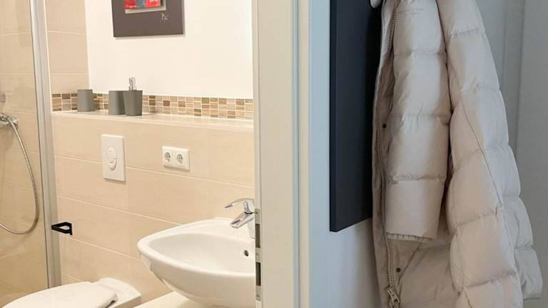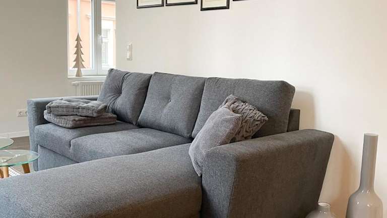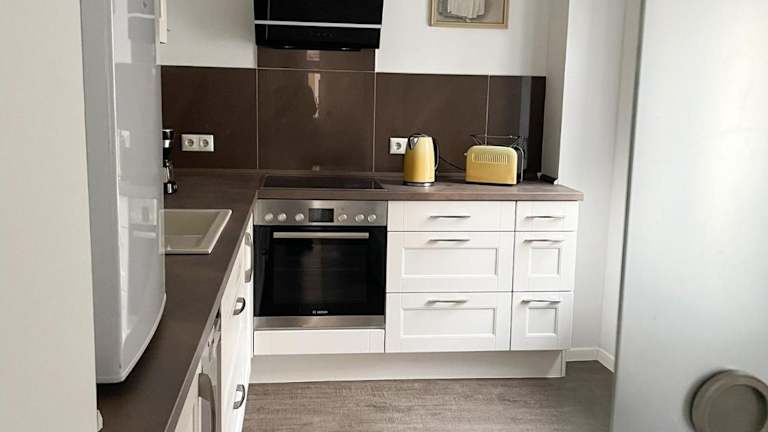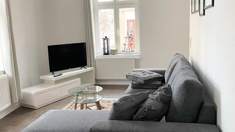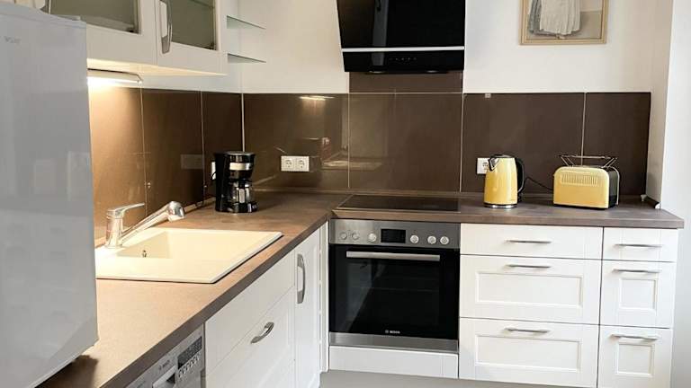 Die Ferienwohnung verfügt über ein Schlafzimmer, ein Wohnzimmer mit Flachbild-TV, eine voll ausgestattete Küche und ein Badezimmer.