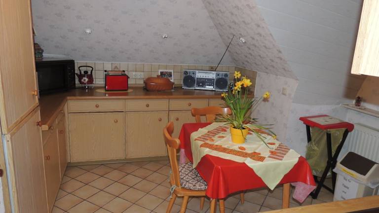 Die Ferienwohnung Karin ist ein charmantes zweistöckiges Apartment im Landhausstil. Das gemütliche Wohnzimmer mit Sat-TV lädt zum Entspannen ein. Die voll ausgestattete Küche bietet alle Annehmlichkeiten, um sich selbst zu versorgen. Das moderne Badezimmer verfügt über einen Haartrockner und für diejenigen, die ihre Kleidung auf Vordermann bringen möchten, ist ein Bügeleisen/-brett vorhanden.