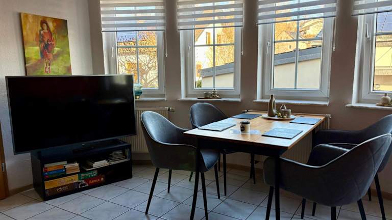 Die Ferienwohnung Kaspers verfügt über ein gemütliches Apartment mit einer Terrasse und einem atemberaubenden Blick auf die Stadt. Das Apartment bietet ein Schlafzimmer, ein Wohnzimmer und einen Flachbild-TV für Ihren Komfort. Die voll ausgestattete Küche mit Kühlschrank und Backofen ermöglicht es Ihnen, Ihre eigenen Mahlzeiten zuzubereiten. Das Badezimmer ist mit einer Dusche ausgestattet und Handtücher und Bettwäsche werden gestellt, um Ihnen einen angenehmen Aufenthalt zu ermöglichen.