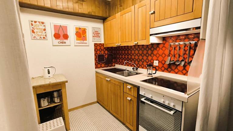 Die Ferienwohnung verfügt über 1 Schlafzimmer, ein Wohnzimmer, ein Badezimmer mit Badewanne sowie eine voll ausgestattete Küche mit Kühlschrank und Herdplatte. Handtücher und Bettwäsche werden bereitgestellt.