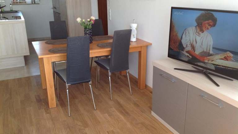Die Ferienwohnung verfügt über 1 Schlafzimmer und ist mit einem Flachbild-TV sowie einer voll ausgestatteten Küchenzeile ausgestattet. Zur Ausstattung der Küchenzeile gehören ein Kühlschrank, ein Geschirrspüler, eine Waschmaschine, ein Ofen und eine Herdplatte. Handtücher und Bettwäsche werden zur Verfügung gestellt.