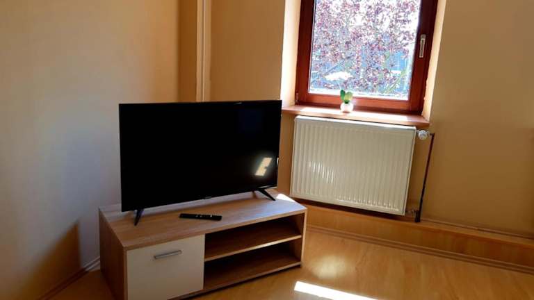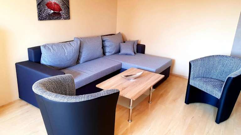 Die Ferienwohnung verfügt über zwei Schlafzimmer, ein Wohnzimmer, eine gut ausgestattete Küche sowie ein Badezimmer mit Dusche und Badewanne. Zur Ausstattung gehören ein Balkon mit Bergblick, ein Satelliten-Flachbild-TV, Handtücher und Bettwäsche.