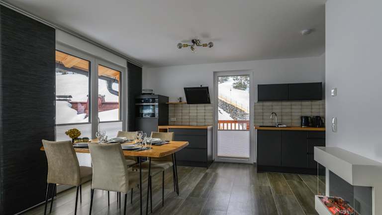 Die Ferienwohnung umfasst zwei Schlafzimmer, ein Wohnzimmer sowie eine gut ausgestattete Küchenzeile. Darüber hinaus ist ein Flachbild-TV vorhanden.
