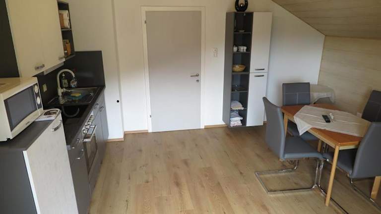 Die Ferienwohnung ist mit einem Satelliten Flachbild-TV ausgestattet. Die Küchenzeile verfügt über alle notwendigen Annehmlichkeiten wie Kühlschrank, Geschirrspüler, Mikrowelle sowie Kaffeemaschine und Wasserkocher.