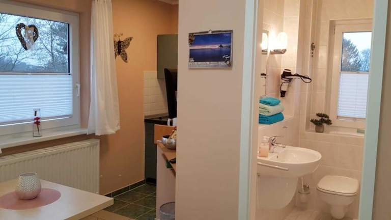 Die Ferienwohnung Kroll bietet Übernachtungsmöglichkeiten in einer hellen und modernen Atmosphäre. Die Unterkunft ist mit einer Terrasse ausgestattet und ermöglicht die Nutzung von kostenlosem WLAN. Haustiere sind in dieser Unterkunft nicht gestattet. Feierlichkeiten wie Junggesellen-/Junggesellinnenabschiede sind ebenfalls nicht erlaubt. Die Zahlung erfolgt vor Anreise per Überweisung.