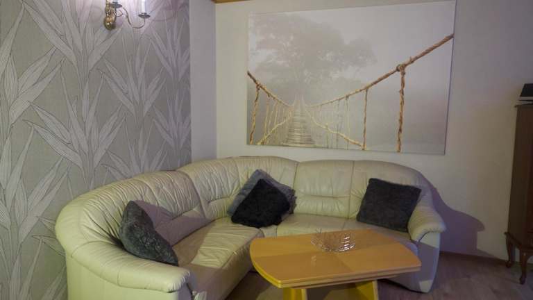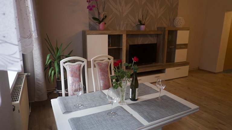 Die Ferienwohnung verfügt über ein Schlafzimmer, ein Wohnzimmer, ein Badezimmer mit Dusche, eine gut ausgestattete Küche mit Kühlschrank und Ofen sowie einen Flachbild-TV. Handtücher und Bettwäsche sind im Preis inbegriffen.