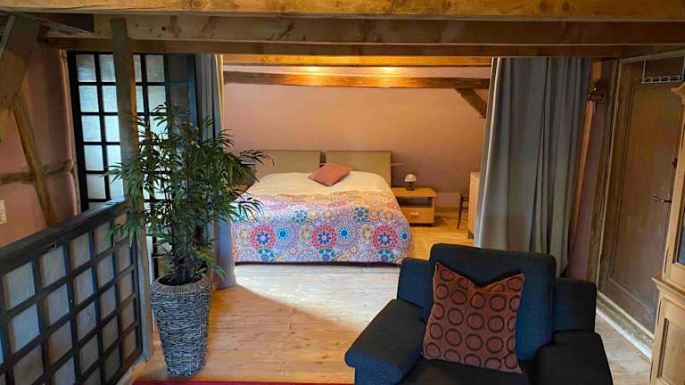 Die Ferienwohnung Kunstscheune Mosel verfügt über ein gemütliches Schlafzimmer, ein komfortables Wohnzimmer und eine voll ausgestattete Küchenzeile mit Kühlschrank und Kaffeemaschine. Das Apartment bietet Platz für bis zu zwei Personen und ist ideal für einen entspannten Aufenthalt. Handtücher und Bettwäsche werden gestellt, so dass Sie sich um nichts kümmern müssen.