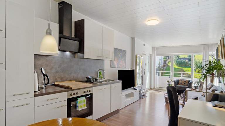 Die Ferienwohnung umfasst 2 Schlafzimmer und eine voll ausgestattete Küche mit Kühlschrank und Geschirrspüler. Ein Badezimmer mit Dusche und kostenlosen Pflegeprodukten ist ebenfalls vorhanden. Handtücher und Bettwäsche werden bereitgestellt.