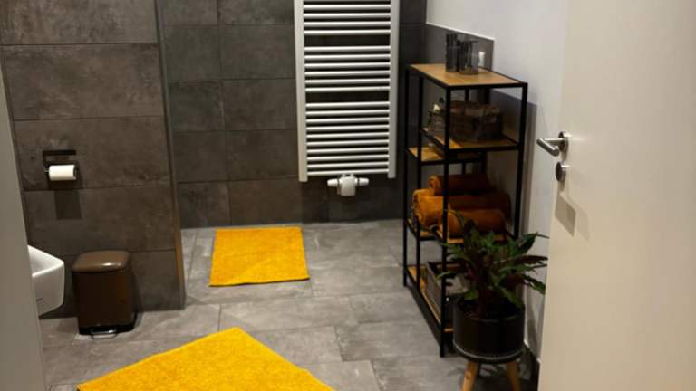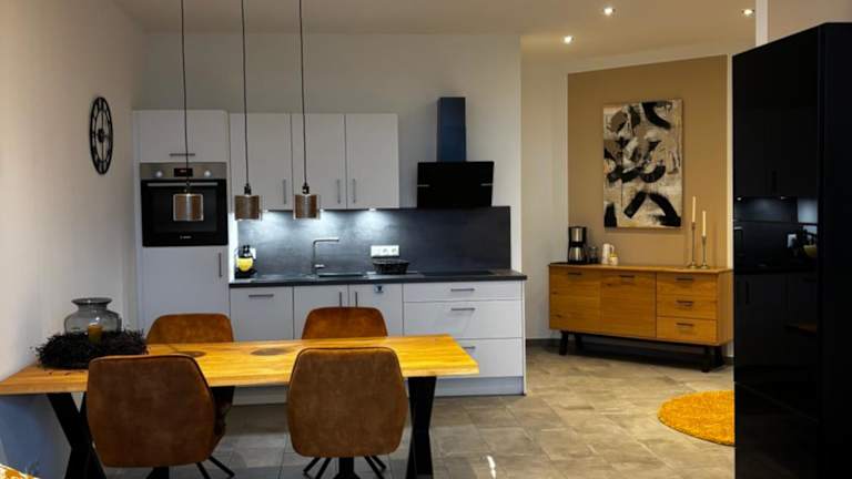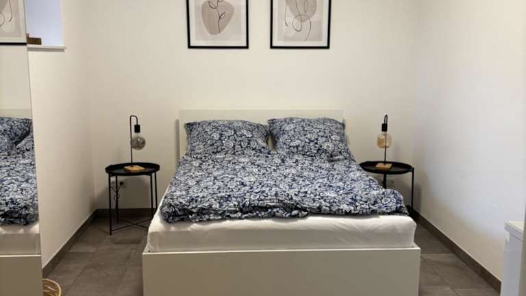 Die Ferienwohnung verfügt über ein Schlafzimmer, ein Wohnzimmer und eine voll ausgestattete Küchenzeile mit Kühlschrank und Kaffeemaschine. Das Badezimmer ist mit einer Dusche und einem Haartrockner ausgestattet. Handtücher und Bettwäsche sind ebenfalls vorhanden.