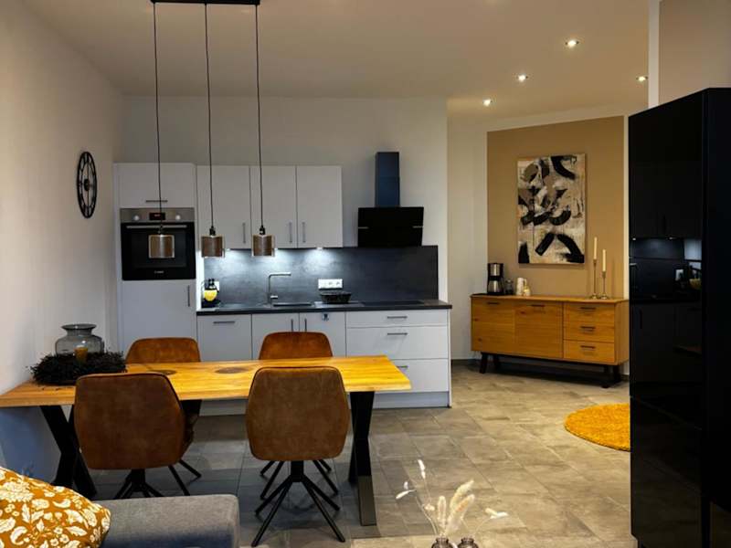 Die Ferienwohnung umfasst 1 Schlafzimmer, ein Wohnzimmer und eine voll ausgestattete Küchenzeile mit Kühlschrank und Kaffeemaschine. Das Badezimmer ist mit einer Dusche und einem Haartrockner ausgestattet. Handtücher und Bettwäsche werden bereitgestellt. Die Unterkunft ist rauchfrei, sowohl in den öffentlichen als auch in den privaten Bereichen.