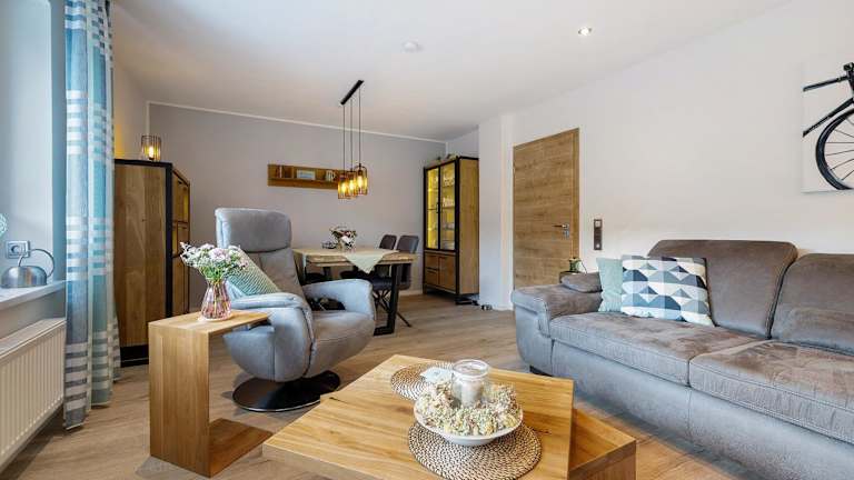 Die Ferienwohnung bietet einen Kinderspielplatz und eine Gartenanlage mit Grillmöglichkeiten. In der Umgebung können Gäste sowohl wandern als auch Fahrrad fahren.