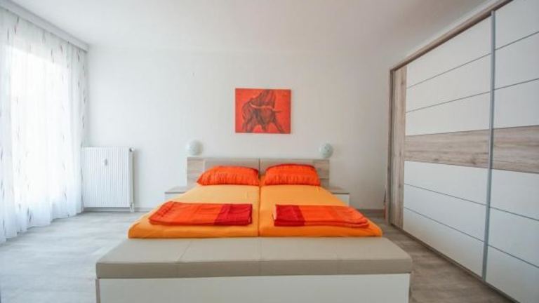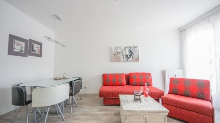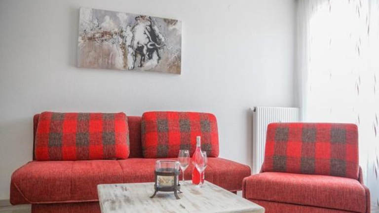 Die Ferienwohnung verfügt über einen Balkon mit Gartenblick, ein Schlafzimmer, ein Wohnzimmer sowie eine gut ausgestattete Küche. Das Badezimmer ist mit einer Dusche und einer Badewanne ausgestattet. Handtücher und Bettwäsche werden bereitgestellt, und es gibt einen Satelliten Flachbild-TV.