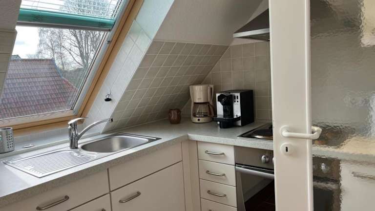 Die Ferienwohnung umfasst ein Schlafzimmer, ein Wohnzimmer und eine voll ausgestattete Küchenzeile mit Kühlschrank und Kaffeemaschine. Das Badezimmer ist mit einer Dusche und einer Badewanne ausgestattet. Zur Unterhaltung steht den Gästen ein TV mit Kabelkanälen zur Verfügung.