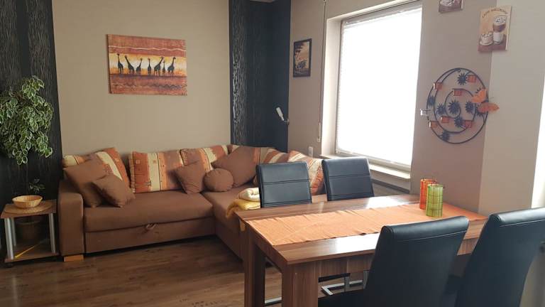 Die Ferienwohnung besteht aus zwei Schlafzimmern, einem Wohnzimmer und einer voll ausgestatteten Küche, die mit einem Kühlschrank und einer Kaffeemaschine ausgestattet ist. Das Badezimmer verfügt über eine Dusche und einen Haartrockner. Handtücher und Bettwäsche werden bereitgestellt. Allergikerfreundliche Zimmer sind ebenfalls verfügbar.