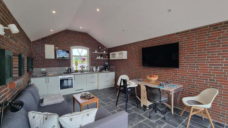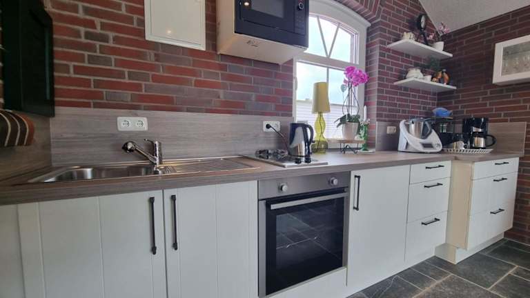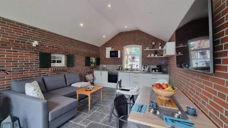 Die Ferienwohnung Lookenhof in Großheide ist eine komfortable Unterkunft mit kostenfreiem WLAN und einer günstigen Lage für Ausflüge zu Sehenswürdigkeiten wie dem Otto Huus und dem Leuchtturm Amrumbank. Die Wohnung verfügt über ein Schlafzimmer, eine voll ausgestattete Küche und kostenfreie Privatparkplätze. Sie bietet auch eine gute Anbindung an den Bahnhof Norddeich und liegt in der Nähe von Museen wie dem Bunkermuseum und dem Ostfriesischen Heimatmuseum.
