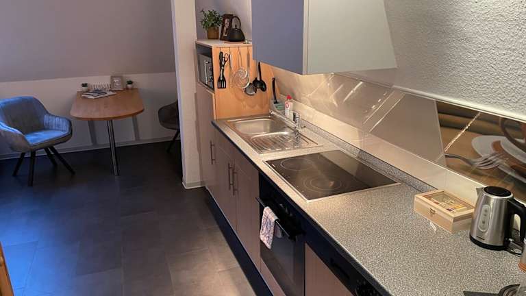 Die Ferienwohnung umfasst 1 Schlafzimmer und ist mit einer Küche ausgestattet, die über einen Kühlschrank und einen Geschirrspüler verfügt. Zur weiteren Ausstattung gehören ein Flachbild-TV, ein Sitzbereich sowie ein Badezimmer mit Dusche. Handtücher und Bettwäsche werden bereitgestellt.