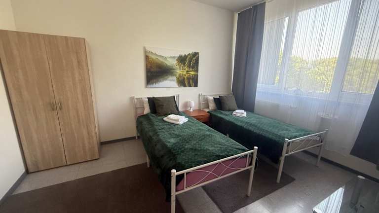 Die Ferienwohnung verfügt über zwei Schlafzimmer, eine Küche mit Kühlschrank und Ofen, einen Flachbild-TV sowie einen gemütlichen Sitzbereich. Das Badezimmer ist mit einer Dusche ausgestattet. Handtücher und Bettwäsche werden bereitgestellt.