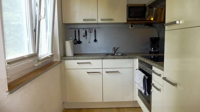 Die Ferienwohnung besitzt zwei Schlafzimmer und ein Wohnzimmer, ausgestattet mit einem Flachbild-TV. Die gut ausgestattete Küche beinhaltet einen Kühlschrank und einen Ofen. Die Unterkunft beinhaltet außerdem ein Badezimmer mit Dusche, und Handtücher sowie Bettwäsche werden bereitgestellt.