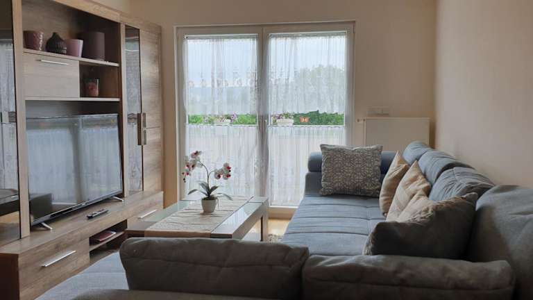 Die Ferienwohnung umfasst ein Schlafzimmer, ein Wohnzimmer sowie einen Flachbild-TV. Die gut ausgestattete Küche ist mit einem Kühlschrank und einem Geschirrspüler versehen. Zudem gibt es ein Badezimmer mit einer Dusche, und Handtücher sowie Bettwäsche werden bereitgestellt.