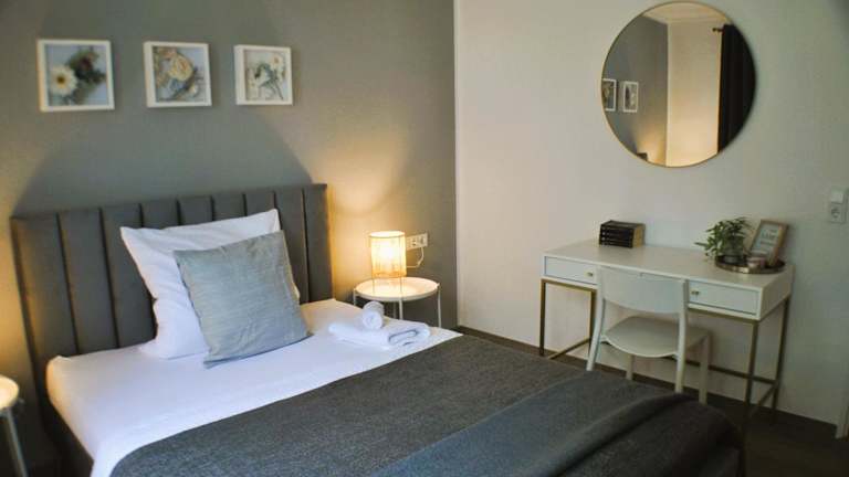 Die Ferienwohnung verfügt über 2 Schlafzimmer und 1 Badezimmer. Zur Ausstattung gehören Bettwäsche, Handtücher, ein Flachbild-TV mit Kabelkanälen, ein Essbereich sowie eine komplett ausgestattete Küche. Ein Balkon mit Stadtblick ist ebenfalls vorhanden.