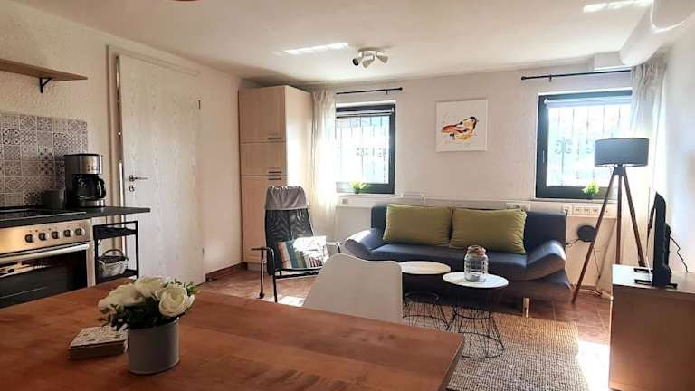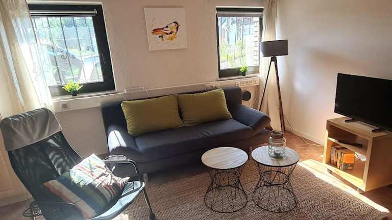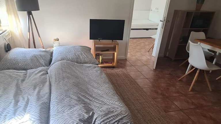 Die Ferienwohnung umfasst ein Schlafzimmer, ein Wohnzimmer und ein eigenes Badezimmer mit Dusche. Zur Ausstattung gehört ein Flachbild-TV sowie eine gut ausgestattete Küche mit Kühlschrank und Geschirrspüler. Handtücher und Bettwäsche werden bereitgestellt.