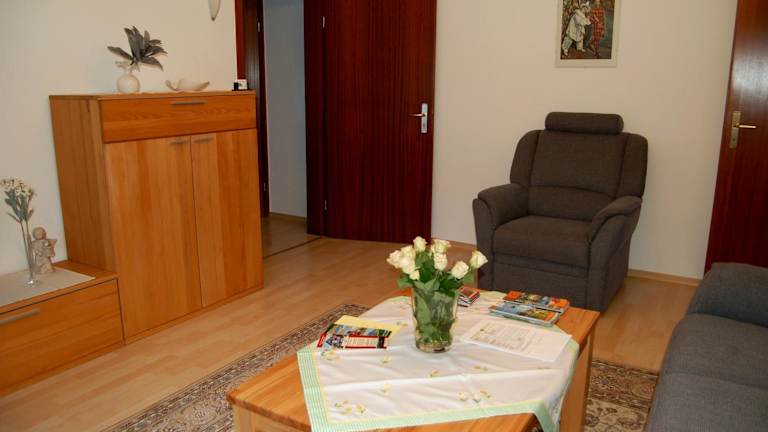 Die Ferienwohnung Marketa bietet eine komfortable Ausstattung, die Ihnen einen angenehmen Aufenthalt ermöglicht. Neben einer komplett ausgestatteten Küche und einem eigenen Bad verfügt das Apartment über ein Wohnzimmer mit Sat-TV und einem Blu-ray-Player. Kostenfreies WLAN ist ebenfalls vorhanden. Eine möblierte Terrasse lädt zum Entspannen im Freien ein.