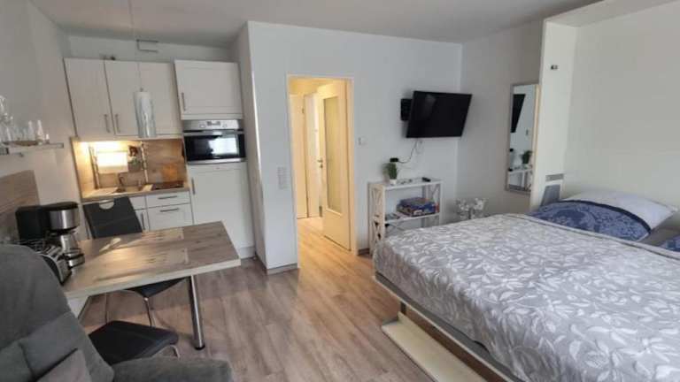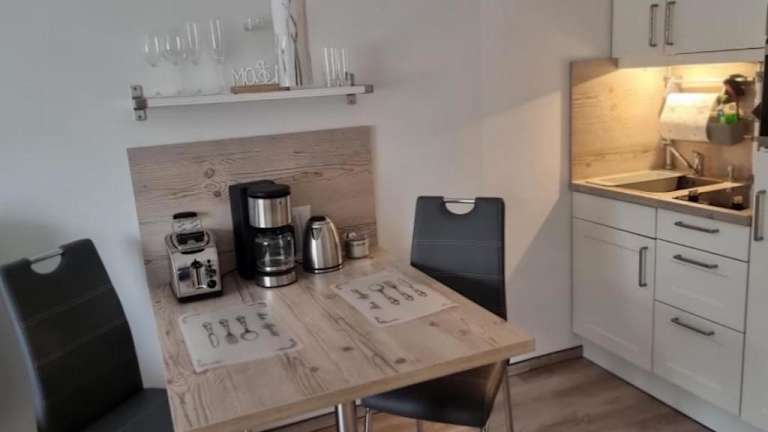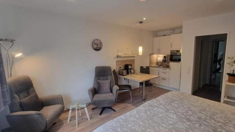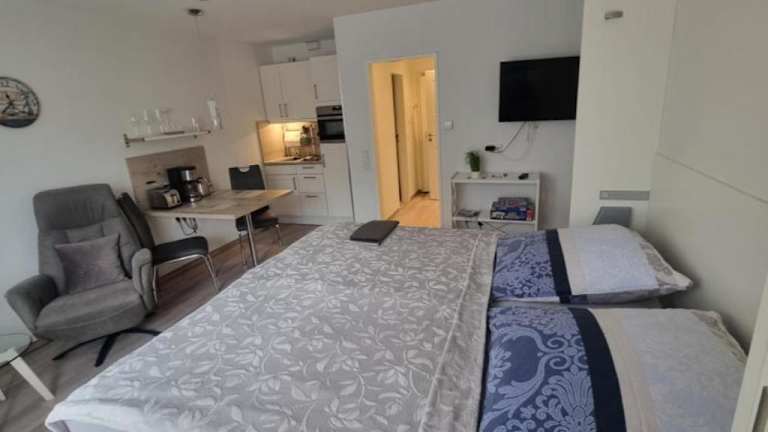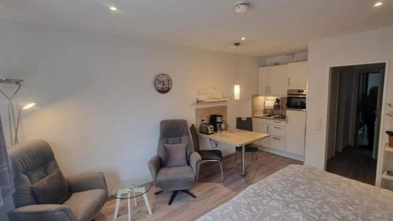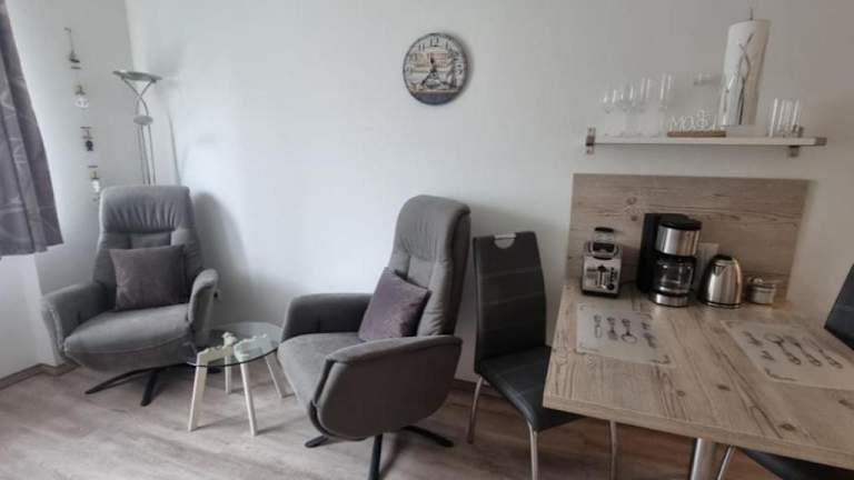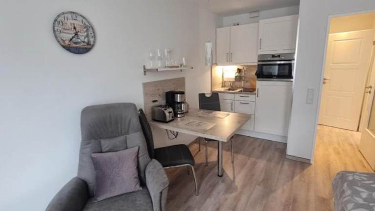 Die Ferienwohnung Meeresblick Cordy in Sankt Peter-Ording bietet eine ideale Lage für einen erholsamen Urlaub an der Nordsee. In der Nähe finden Sie verschiedene Attraktionen wie den Leuchtturm Westerhever und das Informationszentrum Multimar Wattforum. Die Wohnung selbst verfügt über ein Schlafzimmer, ein Wohnzimmer und eine voll ausgestattete Küchenzeile. Kostenlose Privatparkplätze stehen zur Verfügung. Der Strand Hitzsand und der Strand Sankt Peter-Ording sind nur wenige Gehminuten entfernt. Nutzen Sie die Gelegenheit, die Umgebung zu erkunden und besuchen Sie das Stadttheater Heide und das Schifffahrtsmuseum Nordfriesland. Der Flughafen Heide-Büsum ist ebenfalls leicht zu erreichen.