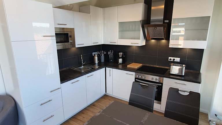 Die Ferienwohnung verfügt über einen Balkon, ein gemütliches Schlafzimmer und ein komfortables Wohnzimmer. Die gut ausgestattete Küchenzeile mit Kühlschrank und Backofen ermöglicht es Ihnen, Ihre eigenen Mahlzeiten zuzubereiten. Handtücher und Bettwäsche werden gestellt, so dass Sie sich um nichts kümmern müssen.