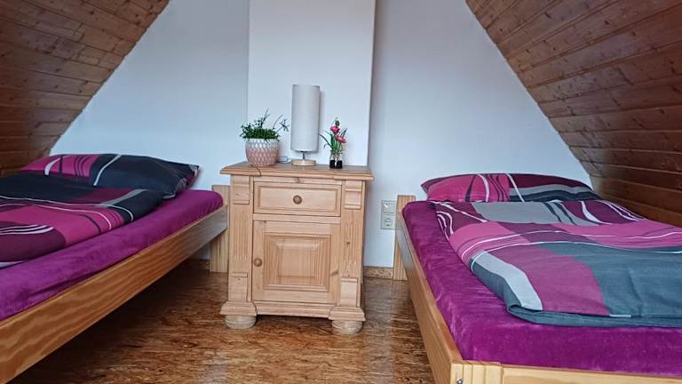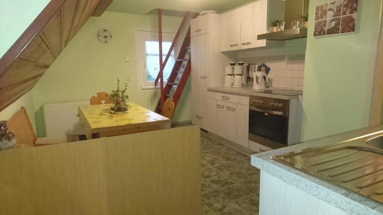 Die Ferienwohnung verfügt über drei Schlafzimmer, ein Wohnzimmer mit Flachbild-TV und eine gut ausgestattete Küche, die mit Kühlschrank und Ofen ausgestattet ist. Das Badezimmer ist mit einer Dusche versehen. Handtücher und Bettwäsche können gegen Aufpreis bereitgestellt werden. Bitte beachten, dass zwei der drei Zimmer sich unter dem Dach befinden und über eine Raum sparende Treppe erreichbar sind.