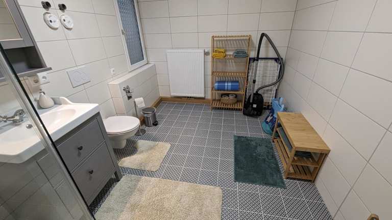 Die Ferienwohnung umfasst ein Schlafzimmer, ein Wohnzimmer und eine voll ausgestattete Küche, die mit einem Kühlschrank und einer Kaffeemaschine ausgestattet ist. Das Badezimmer ist mit einer Dusche und einem Haartrockner versehen. Weitere Annehmlichkeiten umfassen Handtücher sowie Bettwäsche, und die Wohnung ist für Familien geeignet. Auch Brettspiele und Puzzles sind verfügbar.