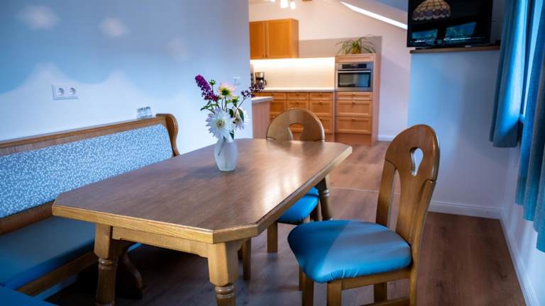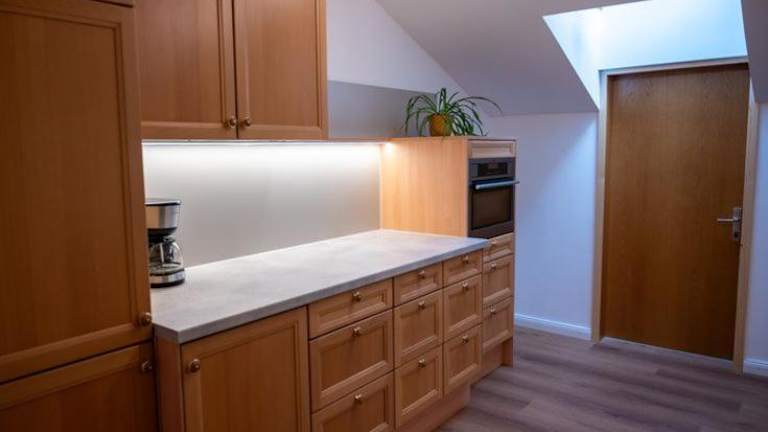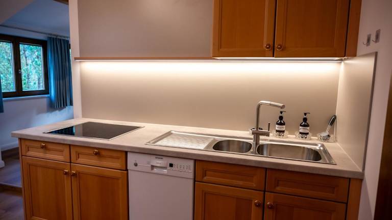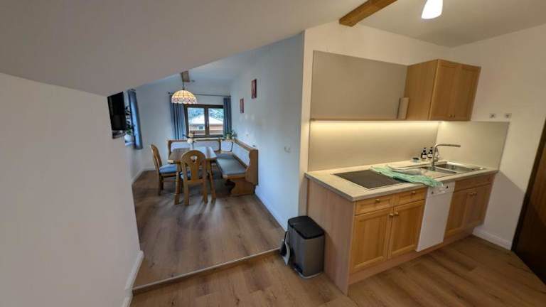 Die Ferienwohnung ist mit einer Küche ausgestattet, die einen Kühlschrank und einen Geschirrspüler umfasst. Grillmöglichkeiten sind für die Gäste vorhanden.