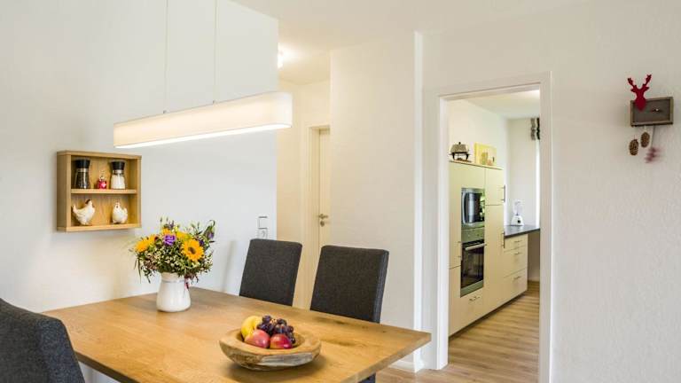 Im Sonjas Himmel können Sie Ihre eigenen Mahlzeiten in der voll ausgestatteten Küche zubereiten und auf der Terrasse oder im Garten genießen. Alternativ gibt es in der Umgebung auch verschiedene Restaurants und Cafés, in denen Sie lokale Spezialitäten probieren können.