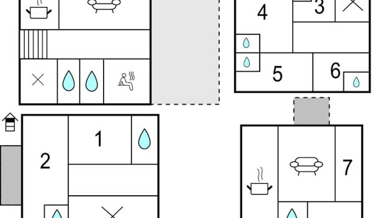 Die Wohnung umfasst sieben Schlafzimmer, ein Wohnzimmer und eine Küche, die mit einem Kühlschrank und einer Kaffeemaschine voll ausgestattet ist. Zudem verfügt sie über sieben Badezimmer mit Dusche und ist mit einem TV ausgestattet.