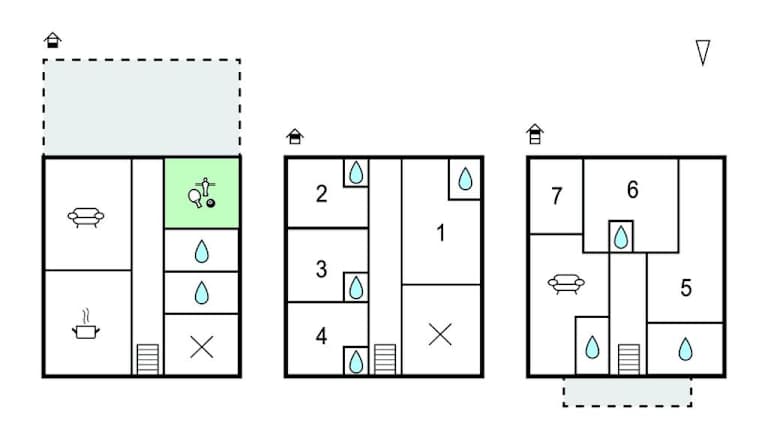 Diese Ferienwohnung bietet Übernachtungsmöglichkeiten in einer Unterkunft mit insgesamt sieben Schlafzimmern, einem Wohnzimmer und einer voll ausgestatteten Küche. Die Unterkunft ist für den Aufenthalt von Gästen ab 18 Jahren geeignet und es dürfen Haustiere mitgebracht werden. Die Wohnung ist als Nichtraucherunterkunft klassifiziert. Zu den Annehmlichkeiten gehören ein Garten und Gartenmöbel.