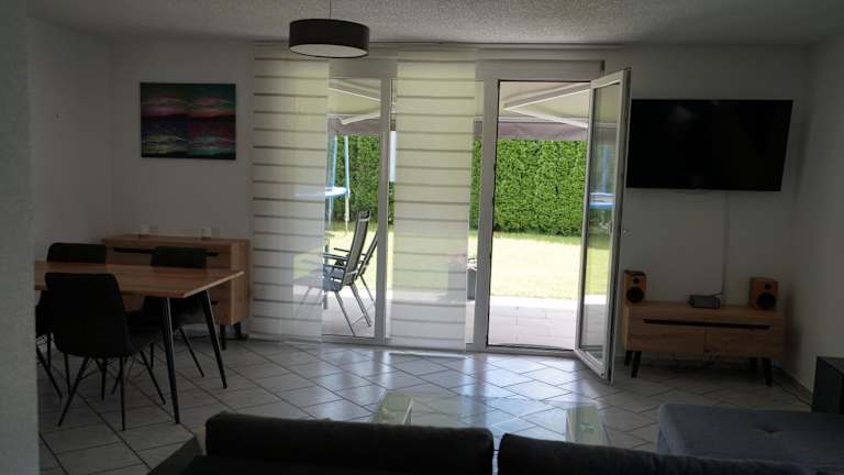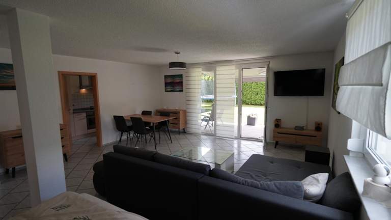 Die Ferienwohnung umfasst zwei Schlafzimmer, ein Wohnzimmer, eine gut ausgestattete Küche und ein Badezimmer mit Dusche und Badewanne. Handtücher und Bettwäsche werden bereitgestellt. Die Terrasse ist ein weiteres angenehmes Gestaltungselement der Unterkunft.
