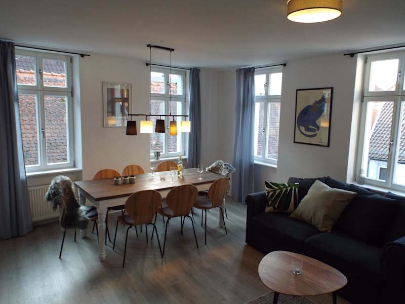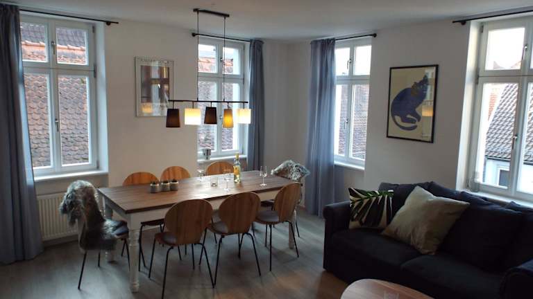 Die Ferienwohnung Mittendrin mit Parkplatz ist in einem Gebäude aus dem Jahr 1780 untergebracht und bietet eine komfortable Unterkunft mit kostenlosem WLAN und Stadtblick. Es sind keine Junggesellenabschiede oder ähnliche Feiern erlaubt. Die Unterkunft wird von einem privaten Gastgeber geführt.