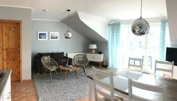 Genießen Sie den Meerblick von Ihrem Balkon in diesem hellen Apartment in Glowe. Mit nur 50 m Entfernung zum Sandstrand von Schaabe und in der Nähe des Hafens von Glowe ist die Lage einfach perfekt. Das Apartment bietet kostenfreie Privatparkplätze und verfügt über ein Schlafzimmer mit Doppelbett, einen kombinierten Wohn- und Essbereich mit integrierter Küche sowie ein eigenes Bad. Einkaufsmöglichkeiten, Restaurants und eine Bushaltestelle sind nur wenige Gehminuten entfernt. Die Umgebung bietet zahlreiche Freizeitmöglichkeiten wie Reiten, Radfahren, Angeln und Wandern.