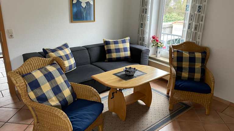 Die Ferienwohnung verfügt über zwei Schlafzimmer, ein Wohnzimmer, ein Badezimmer mit Dusche sowie eine gut ausgestattete Küchenzeile mit Kühlschrank und Geschirrspüler. Für zusätzlichen Komfort können Handtücher und Bettwäsche gegen Aufpreis bereitgestellt werden.