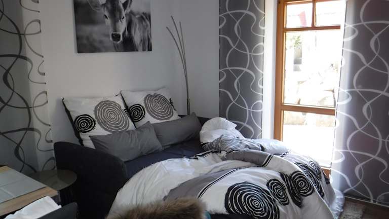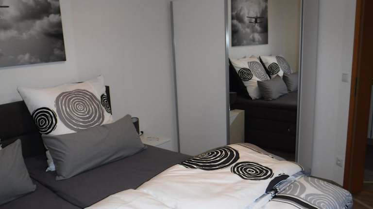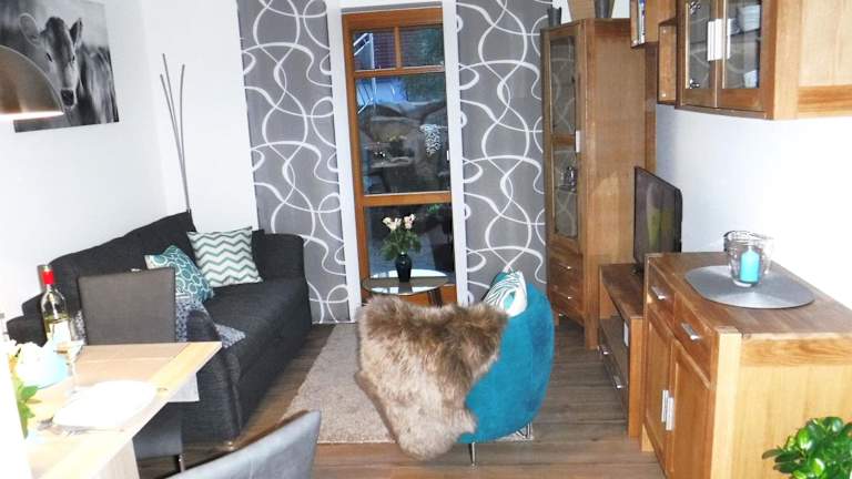 Die Wohnung enthält ein Schlafzimmer und ein Badezimmer, das mit Dusche und Badewanne ausgestattet ist. Ein gemütlicher Sitz- und Essbereich sowie ein DVD-Player gehören ebenfalls zur Ausstattung. Handtücher und Bettwäsche werden bereitgestellt. Den Gästen stehen allergikerfreundliche Zimmer zur Verfügung.