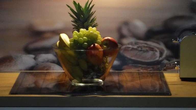 Die Ferienwohnung verfügt über eine Küchenzeile, die mit modernen Geräten wie einem Kühlschrank, Geschirrspüler und Ofen ausgestattet ist. Lebensmittellieferungen können ebenfalls organisiert werden.