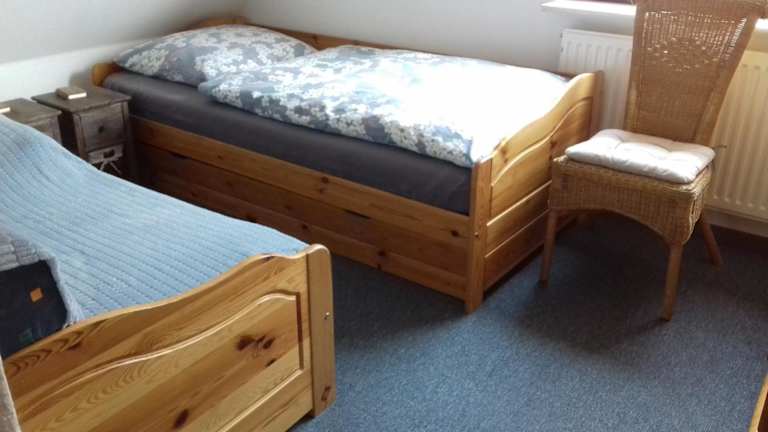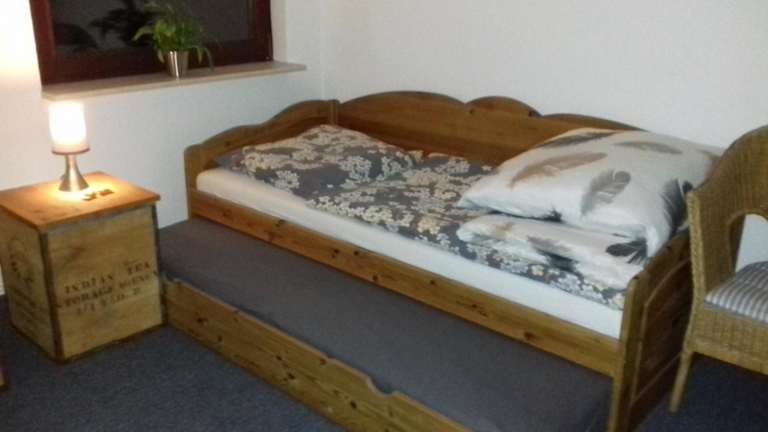 Die Ferienwohnung bietet Platz für bis zu 6 Personen und verfügt über 2 Schlafzimmer und 1 Badezimmer. Die Zimmer sind gemütlich eingerichtet und mit Bettwäsche und Handtüchern ausgestattet. Zur weiteren Ausstattung gehören ein Flachbild-Sat-TV, ein Essbereich und eine voll ausgestattete Küche, in der Sie Ihre eigenen Mahlzeiten zubereiten können. Von der Terrasse aus haben Sie einen schönen Blick auf den Garten.